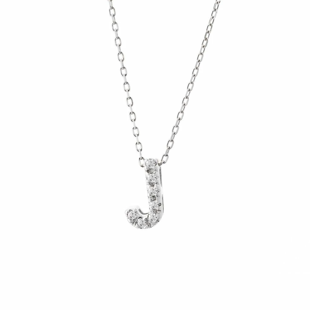 White Gold Initial Single Micro Pave Diamond Necklace (14kwg Initial Necklace) (Diamond IntIIal Necklace (14kw)) D – 0.03 (7mm),(Promo),Initial J,Letter J