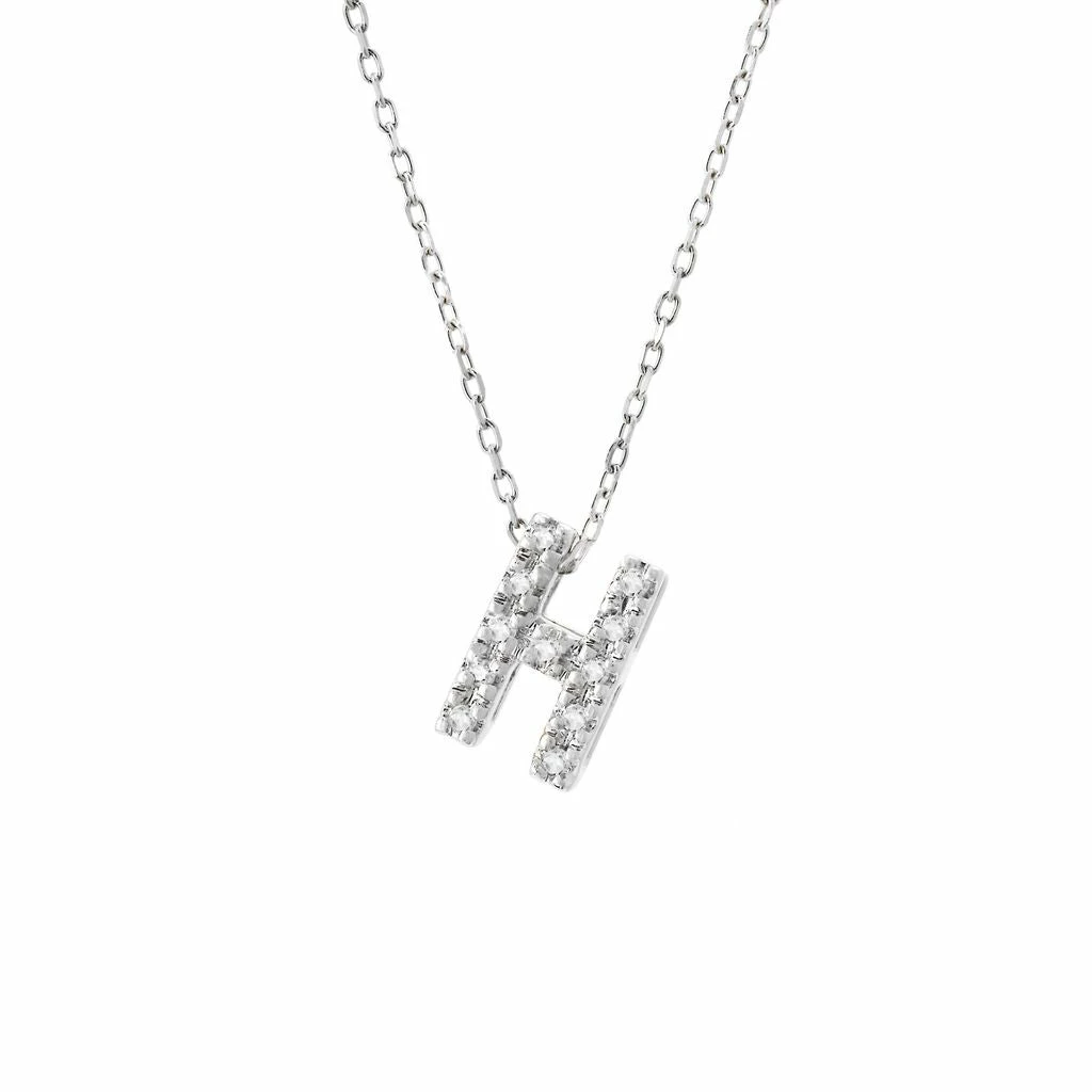 White Gold Initial Single Micro Pave Diamond Necklace (14kwg Initial Necklace) (Diamond IntIIal Necklace (14kw)) D – 0.04 (7mm),(Promo),Initial H,Letter H