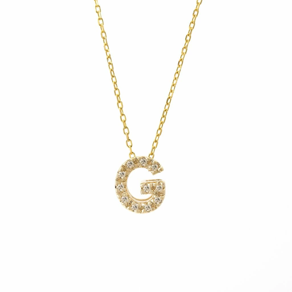 Yellow Gold Initial Single Micro Pave Diamond Necklace (14kyg Initial Necklace) (Diamond IntIIal Necklace (14ky)) D – 0.04 (7mm),(Promo),Initial G,Letter G