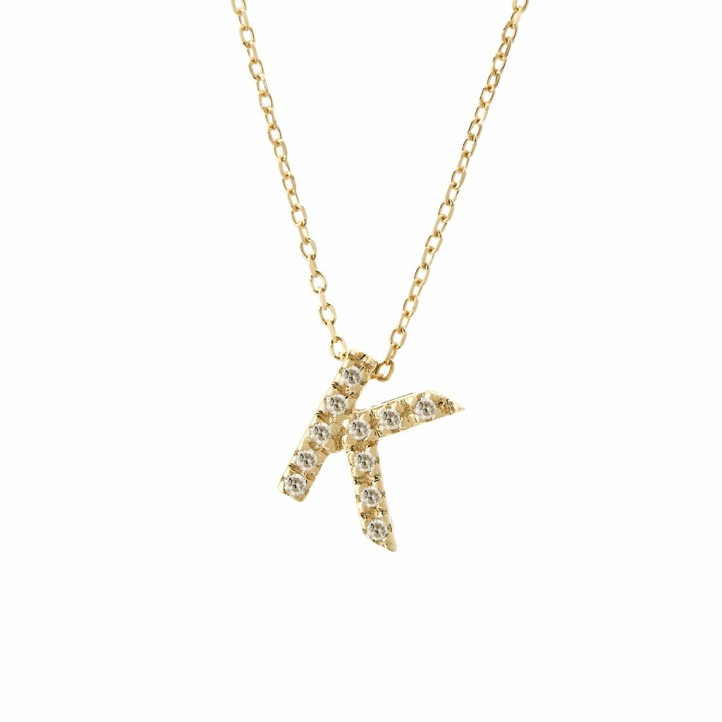 Yellow Gold Initial Single Micro Pave Diamond Necklace (14kyg Initial Necklace) (Diamond IntIIal Necklace (14ky)) D – 0.03 (7mm),(Promo),Initial K,Letter K