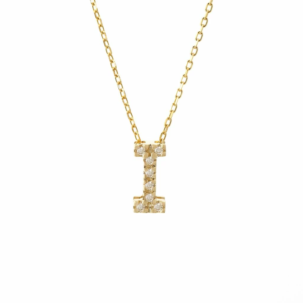 Yellow Gold Initial Single Micro Pave Diamond Necklace (14kyg Initial Necklace) (Diamond IntIIal Necklace (14ky)) D – 0.03 (7mm),(Promo),Initial I,Letter I