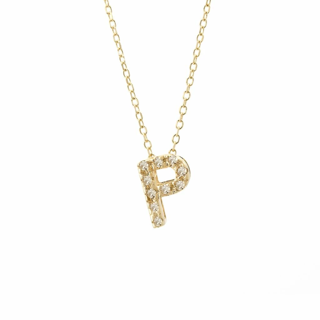 Yellow Gold Initial Single Micro Pave Diamond Necklace (14kyg Initial Necklace) (Diamond IntIIal Necklace (14ky)) D – 0.03 (7mm),(Promo),Initial P,Letter P