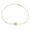 Yellow Gold Initial Single Prong Diamond Bracelet (14kyg Initial Bracelet) (Diamond IntIIal”x” Bracelet (Yg/7″+1″)) D – 0.04 (),Initial ,Letter