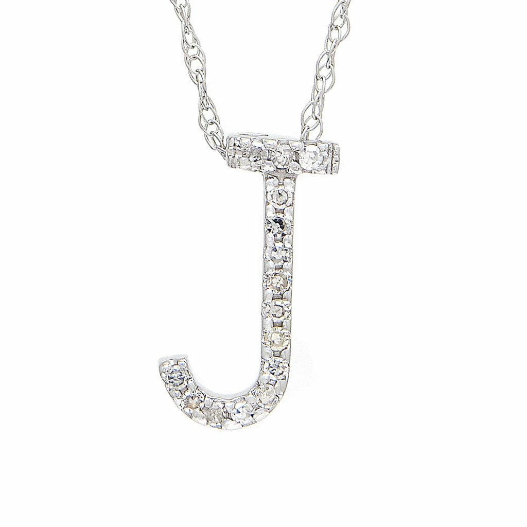 White Gold Initial Single Pave Diamond Pendant (14kwg Initial Pendant) (Diamond “j” (Wg/With Chain)) D – 0.08 (11.15mm H),Wg,Initial J,Letter J