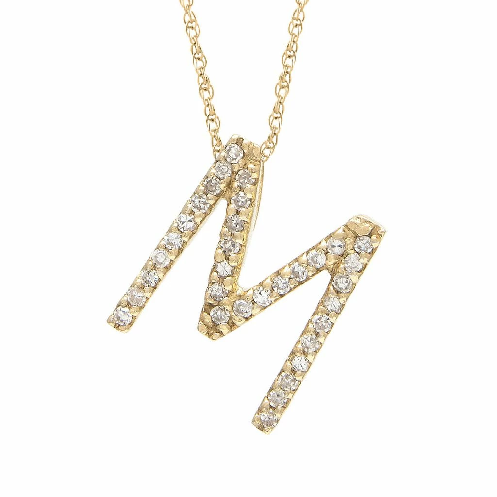 Yellow Gold Initial Single Micro Pave Diamond Necklace (14kyg Initial Necklace) (Diamond “m” (Yg/With Chain) Initial) D – 0.13 (11 Mm),Promo,Initial M,Letter M