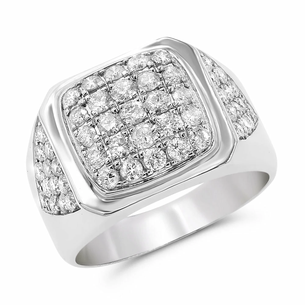 Diamond Men’s Ring – Set in 14K White Gold Prong Set – 2.21 ct G-H Color /FORR6034B