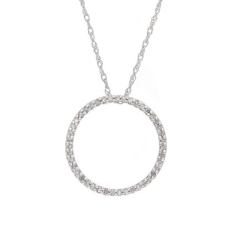White Gold Circle Single Pave Diamond Pendant (14kwg Circle Pendant) (Diamond Necklace (Wg/With Chain)) D – 0.15,Circle