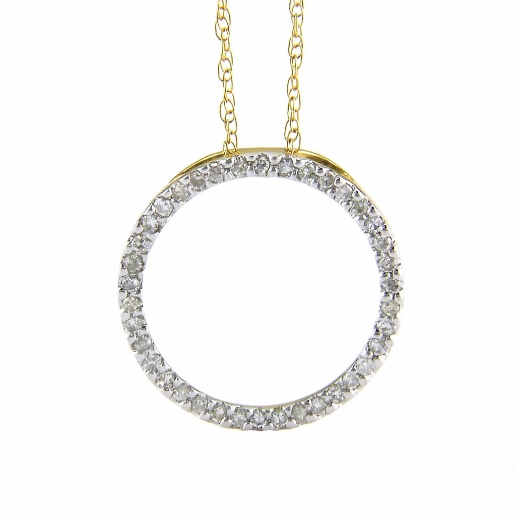 Yellow Gold Circle Single Pave Diamond Pendant (14kyg Circle Pendant) (Diamond Necklace (Yg/With Chain)) D – 0.15 (16.58mm H),About An Inch,Circle