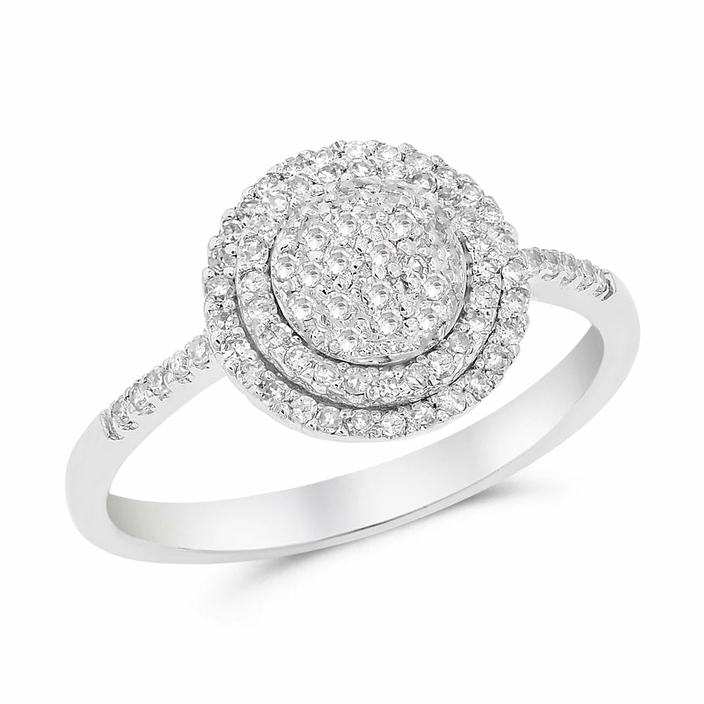 G-H Color Diamond Ring – Set in 14K White Gold – Prong & Pave Setting 0.38 ct /GR2520