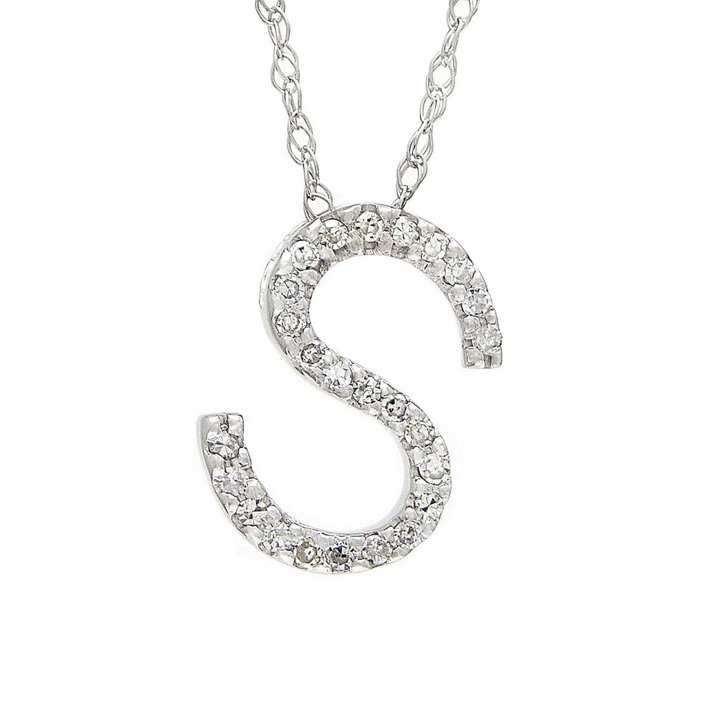 White Gold Initial Single Pave Diamond Pendant (14kwg Initial Pendant) (Diamond “s” (Wg/With Chain)) D – 0.10 (11.15mm H),Initial S,Letter S