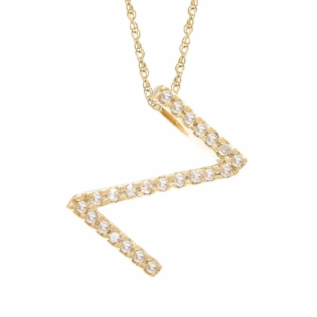 Yellow Gold Initial Single Micro Pave Diamond Necklace (14kyg Initial Necklace) (Diamond “z” (Yg/With Chain) Initial) Dz – 0.10 (11 Mm),Promo,Initial Z,Letter Z