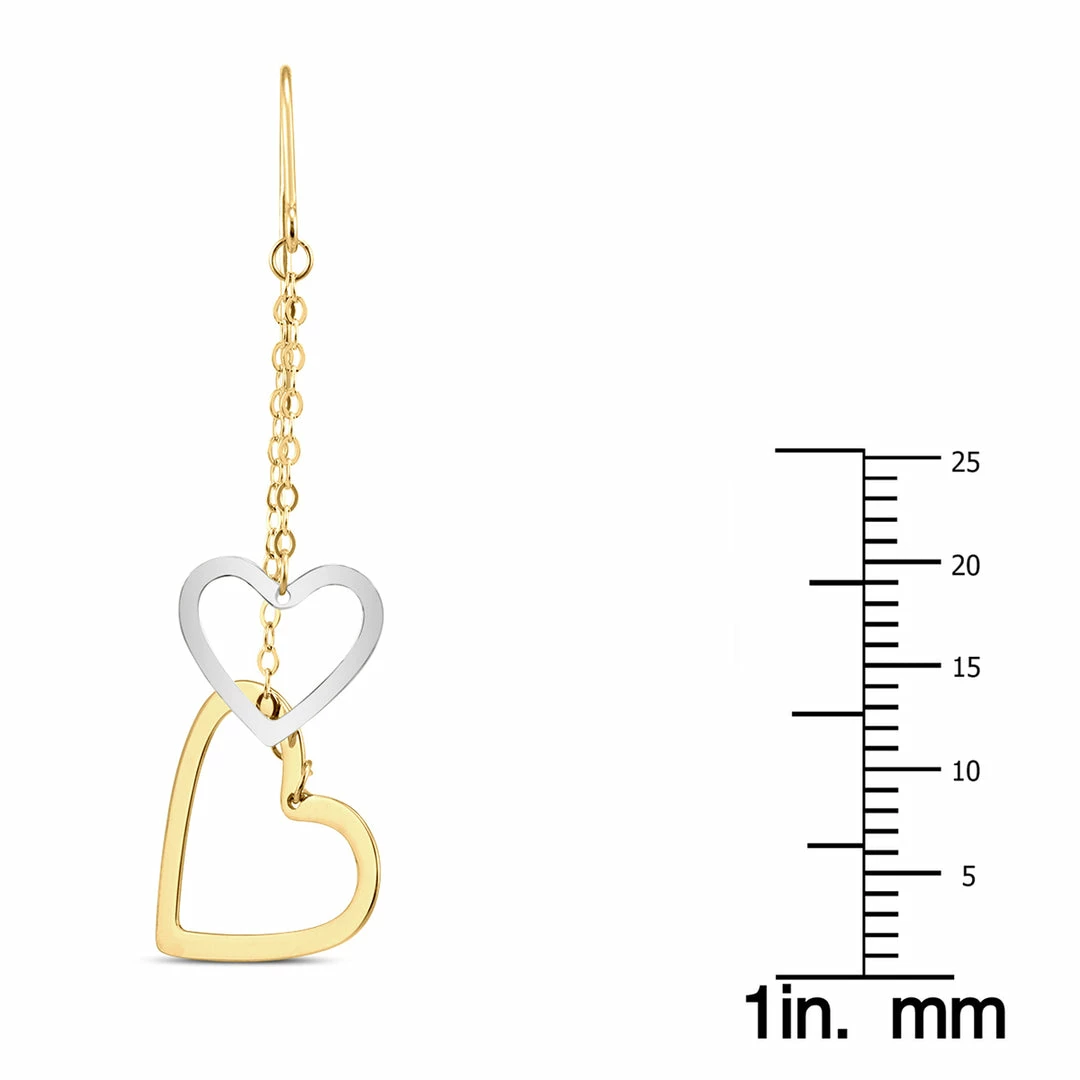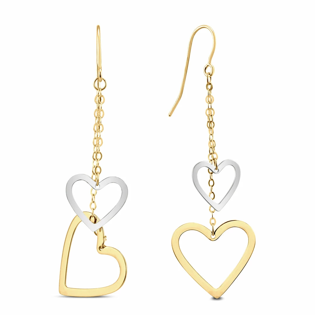 Outlet 𧨠Monary Double Heart Dangle Drop Earrings in 10K Two Tone Gold for π© women π§¨