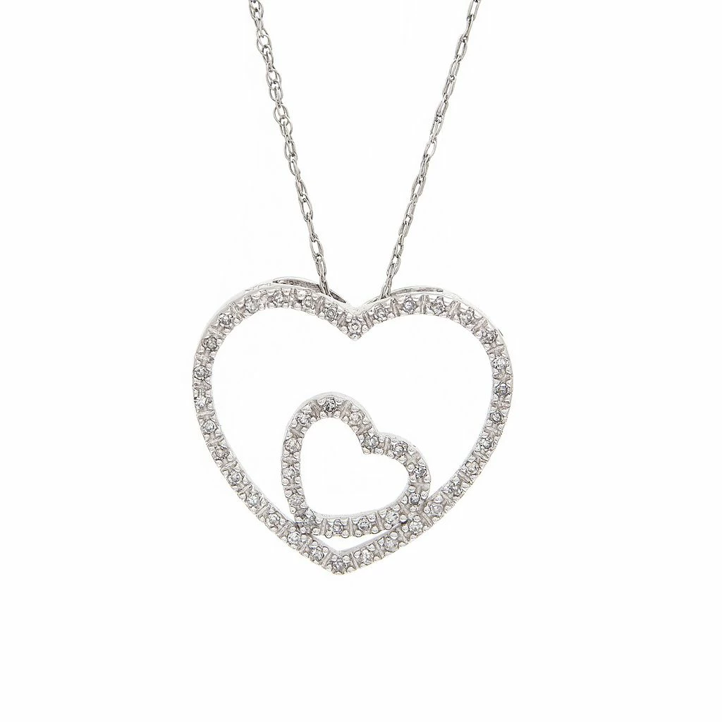 White Gold Heart Single Prong Diamond Pendant (14kwg Heart Pendant) (Double Prong Heart (Wg/With Chain)) D – 0.20 (17.81mm H 19.45mm W),Heart