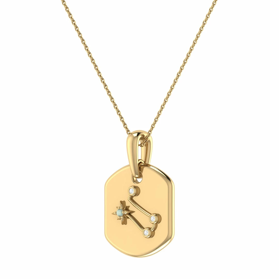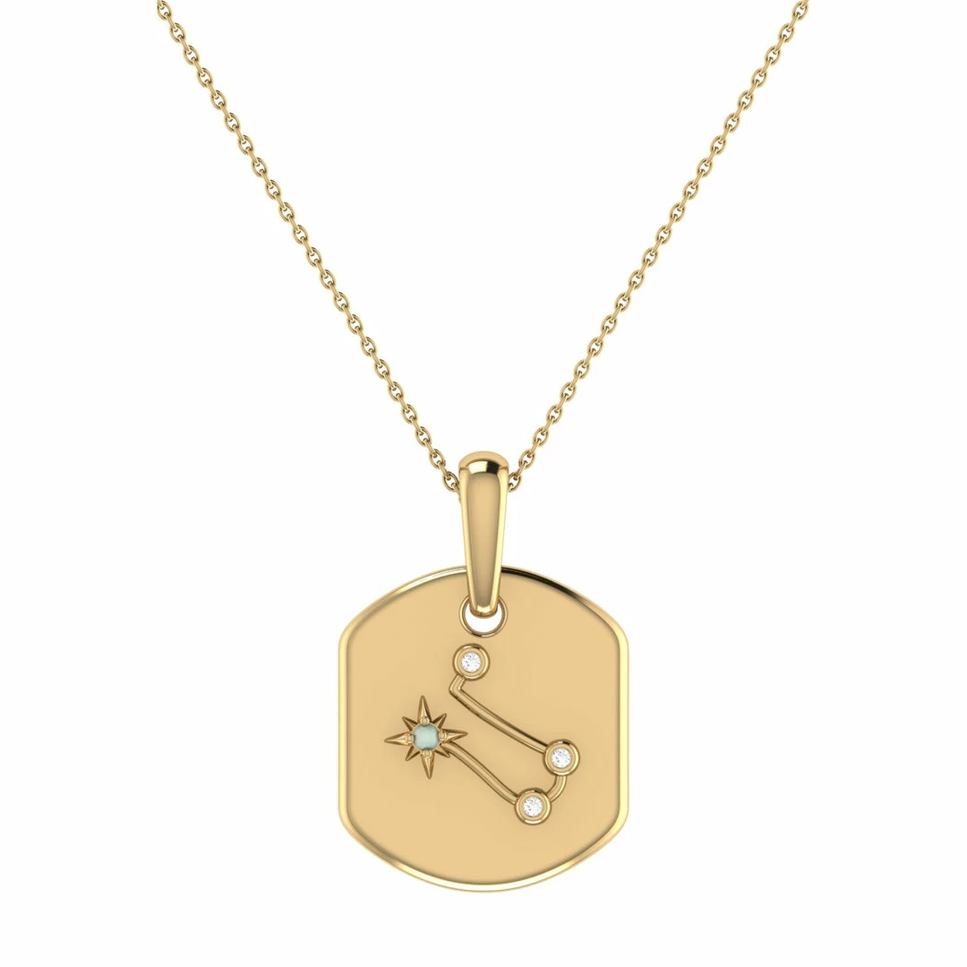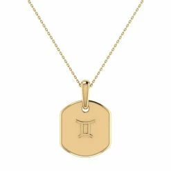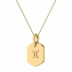 Spearhead innovation and creativity when you’re rocking our Gemini Twin Constellation Tag Pendant Necklace. Born between May 21st and June 20th, Gemini are playful and intellectually curious. One of their lucky birthstones is Moonstone. Crafted in 925 Sterling Silver, this pendant necklace features a single moonstone gemstone (0.01 Carats) along with 0.03 carats of genuine, natural diamonds in collet prong and bezel settings. Plated in 14K Yellow Gold Vermeil, this necklace has a long-lasting shelf-life. This tag comes with a 18″ cable chain, with jump rings at 16″ and 17″ so you can adjust the length as needed. This tag is 16.1 mm wide and 23.9 mm long. This necklace is beautifully presented with the inspirational poem ‘Cosmic’ written by the founder & CEO.