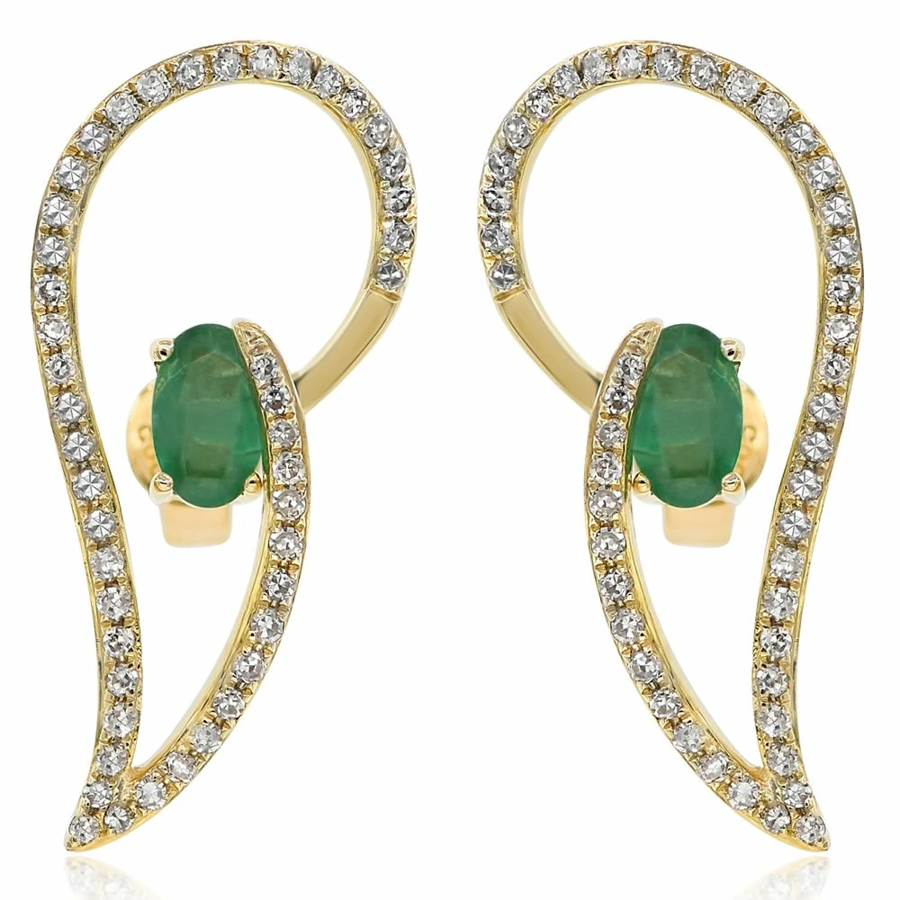 Promo β Monary Green Emerald & Diamond Fashion Earrings Set in 14K Yellow Gold for π© women β