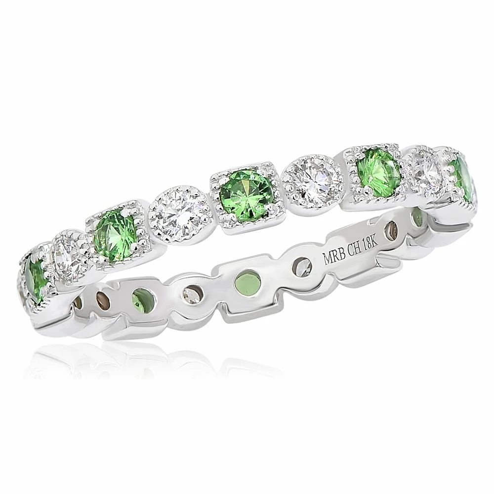 Green Garnet & Diamond Eternity Ring – Set in 14K White Gold – Prong Set 1.00 ct /ER02973