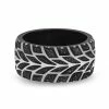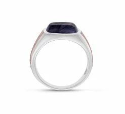 Crafted in 925 Sterling Silver, this timeless ring features a grey picture agate stone with a textured precious metal design on the ring shank. Brown rhodium is used to plate the textured precious metal pattern and give it a glimmering finish.