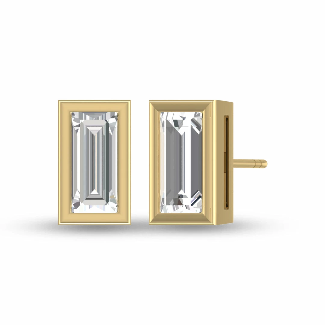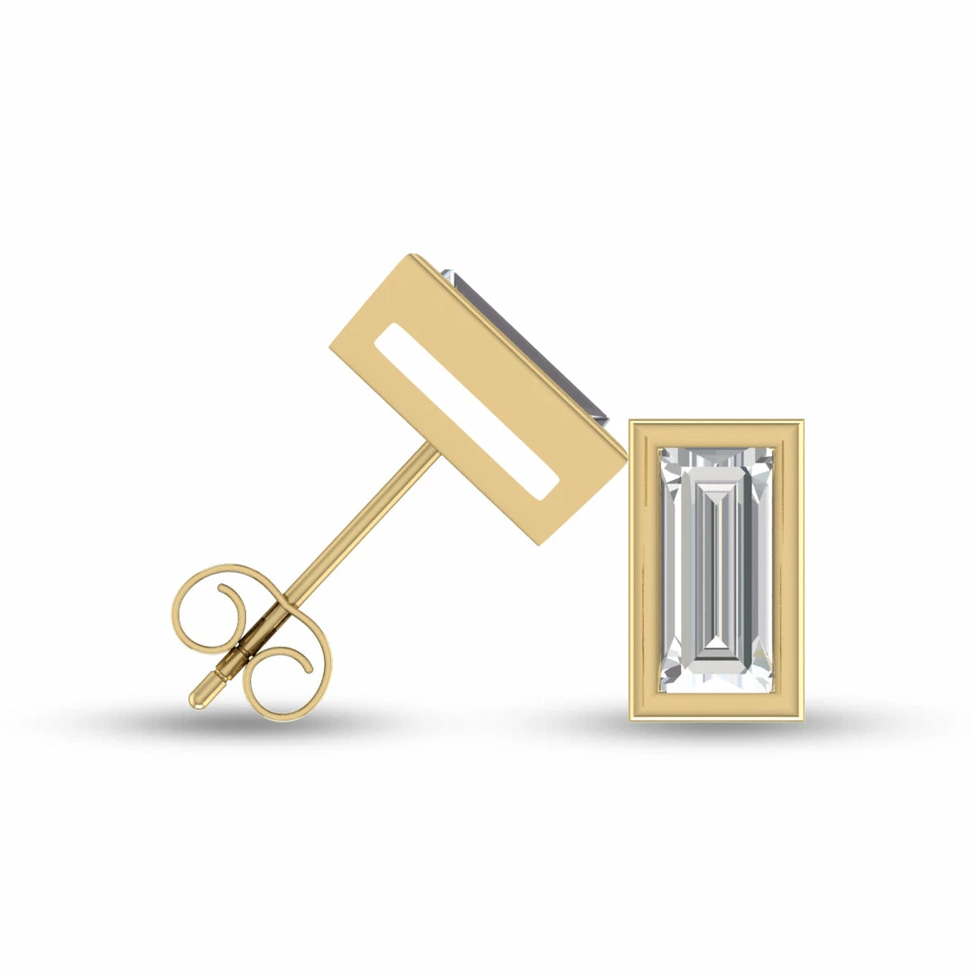 These timeless lab-grown diamond earrings are a sophisticated accessory everyone needs in their jewelry collection. Masterfully bezel set in 14K yellow gold, this radiant piece features baguette-shaped solitaire diamonds weighing 1/2 CTW and durable push-back posts. The iridescent glimmer, secure prong setting, and clean-cut lines of this piece are sure to add a subtle touch of elegance to any outfit. If you are looking for sustainably made earrings that have identical brilliance to a natural diamond while being environmentally conscious and budget-friendly, this is the accessory for you!