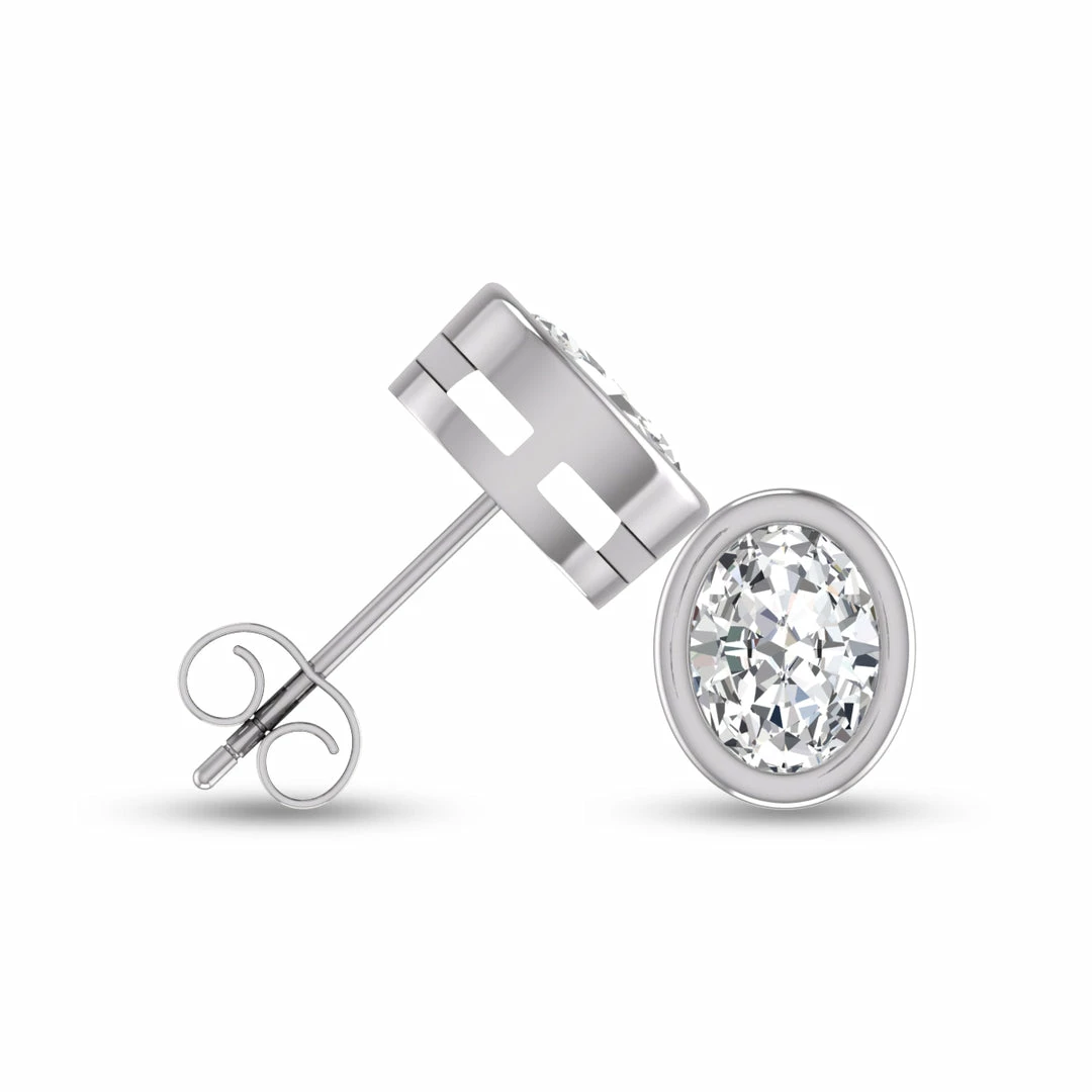 These timeless lab-grown diamond earrings are a sophisticated accessory everyone needs in their jewelry collection. Luxuriously bezel set in 14K white gold, this radiant piece features oval-shaped solitaire diamonds weighing 1/2 CTW and durable push-back posts. The unconditional glimmer, secure prong setting, and clean-cut lines of this piece are sure to add a subtle touch of elegance to any outfit. If you are looking for sustainably made earrings that have identical brilliance to a natural diamond while being environmentally conscious and budget-friendly, this is the accessory for you!