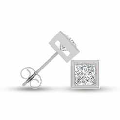 Cheap 𧨠Monary Lab Grown 1/2 CTW Princess Cut Bezel Set Solitaire Diamond Earrings in 14K White Gold for π© women β€οΈ