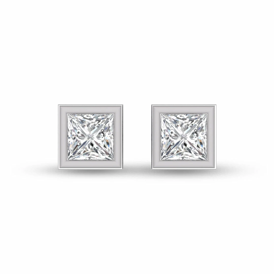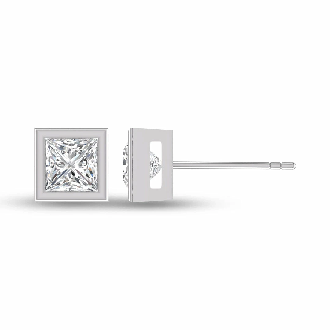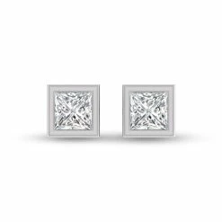 These timeless lab-grown diamond earrings are a sophisticated accessory everyone needs in their jewelry collection. Pristinely bezel set in 14K white gold, this radiant piece features princess-cut solitaire diamonds weighing 1/2 CTW and durable push-back posts. The unconditional glimmer, secure prong setting, and clean-cut lines of this piece are sure to add a subtle touch of elegance to any outfit. If you are looking for sustainably made earrings that have identical brilliance to a natural diamond while being environmentally conscious and budget-friendly, this is the accessory for you!