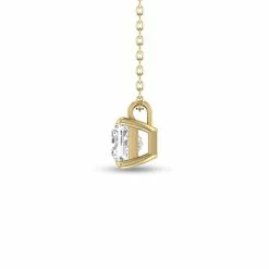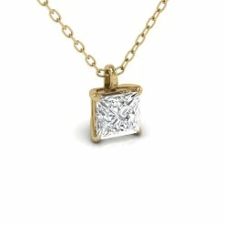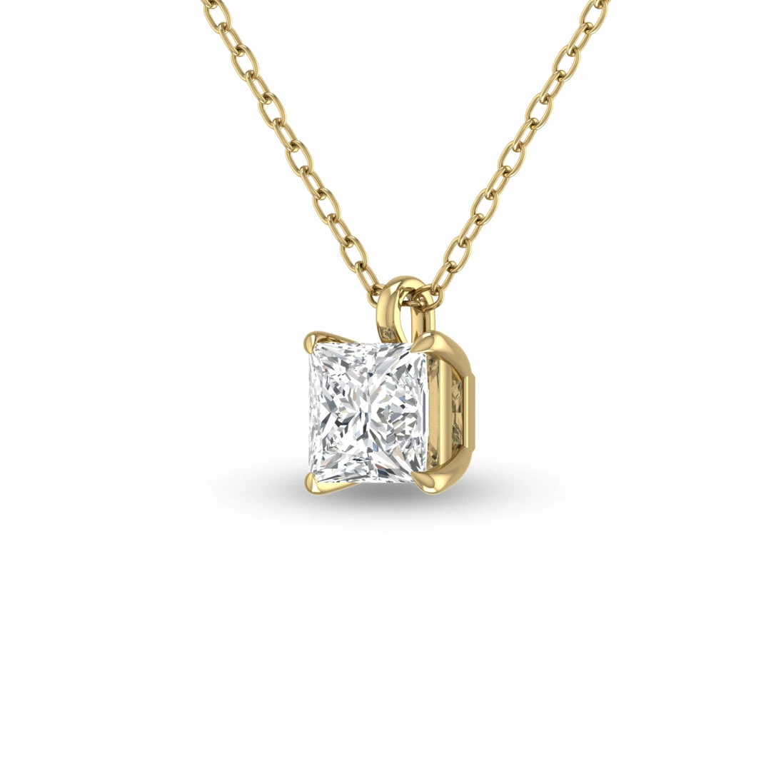 This timeless lab-grown diamond necklace is an eye-catching accessory that will turn heads on any occasion. Expertly designed in 14K yellow gold, this necklace features a radiant 1/2 CTW princess-cut diamond gracefully resting on and a secure 18-inch link chain. There is no comparison when it comes to this piece’s unconditional sparkle, durable prong setting, and iridescent clean-cut lines. Whether worn alone or layered with other accessories, this environmentally conscious, sustainably made, and budget-friendly solitaire diamond necklace is sure to glimmer effortlessly while elevating any outfit it is paired with.