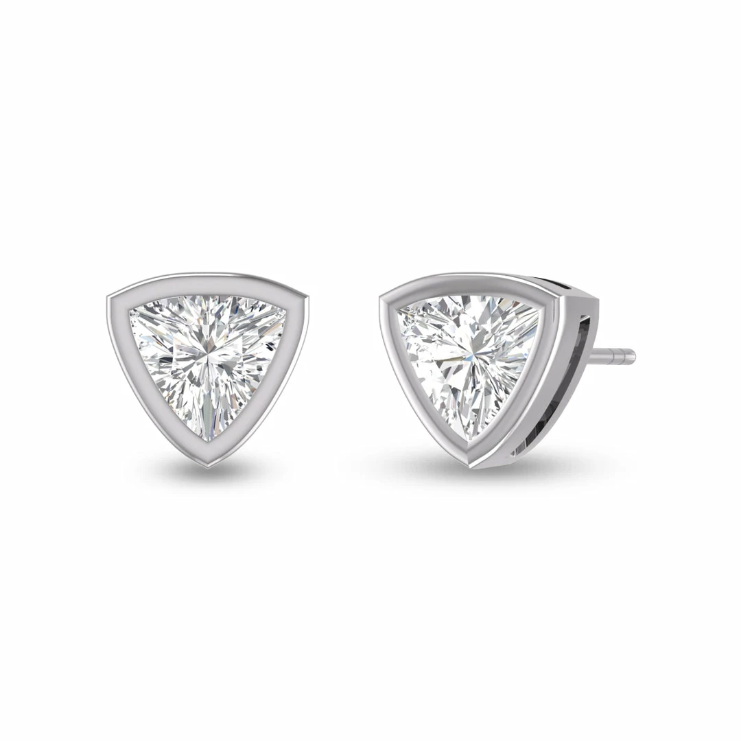 These timeless lab-grown diamond earrings are a sophisticated accessory everyone needs in their jewelry collection. Pristinely bezel set in 14K white gold, this radiant piece features trillion-shaped solitaire diamonds weighing 1/2 CTW and durable push-back posts. The unconditional glimmer, secure prong setting, and clean-cut lines of this piece are sure to add a subtle touch of elegance to any outfit. If you are looking for sustainably made earrings that have identical brilliance to a natural diamond while being environmentally conscious and budget-friendly, this is the accessory for you!