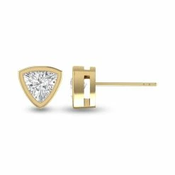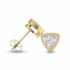 Cheapest π Monary Lab Grown 1/2 CTW Trillion Shaped Bezel Set Solitaire Diamond Earrings in 14K Yellow Gold for π© women π₯