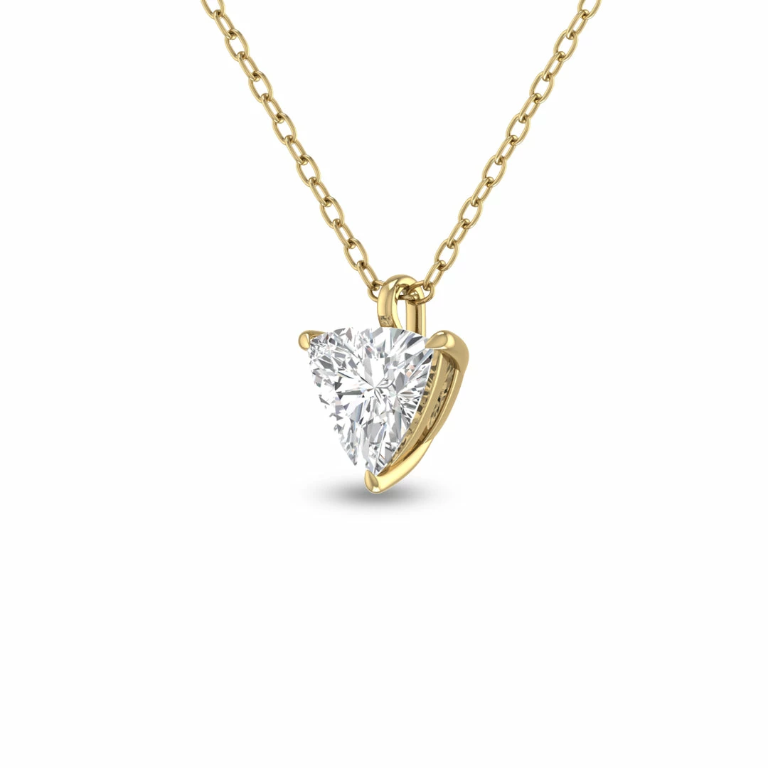 This timeless lab-grown diamond necklace is an eye-catching accessory that will turn heads on any occasion. Expertly designed in 14K yellow gold, this necklace features a radiant 1/2 CTW trillion-shaped diamond gracefully resting on and a secure 18-inch link chain. There is no comparison when it comes to this piece’s unconditional sparkle, durable prong setting, and iridescent clean-cut lines. Whether worn alone or layered with other accessories, this environmentally conscious, sustainably made, and budget-friendly solitaire diamond necklace is sure to glimmer effortlessly while elevating any outfit it is paired with.