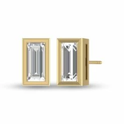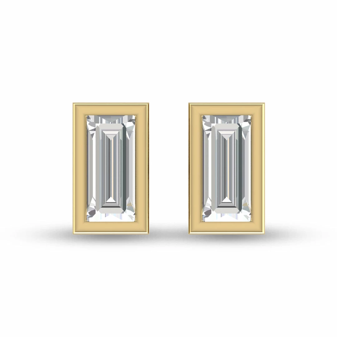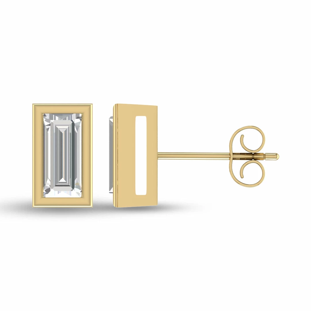 These timeless lab-grown diamond earrings are a sophisticated accessory everyone needs in their jewelry collection. Masterfully bezel set in 14K yellow gold, this radiant piece features baguette-shaped solitaire diamonds weighing 1/4 CTW and durable push-back posts. The iridescent glimmer, secure prong setting, and clean-cut lines of this piece are sure to add a subtle touch of elegance to any outfit. If you are looking for sustainably made earrings that have identical brilliance to a natural diamond while being environmentally conscious and budget-friendly, this is the accessory for you!