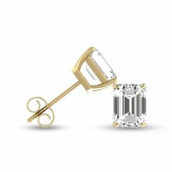 Deals 𧨠Monary Lab Grown 1/4 CTW Emerald Cut Solitaire Diamond Earrings in 14K Yellow Gold for π© women β¨