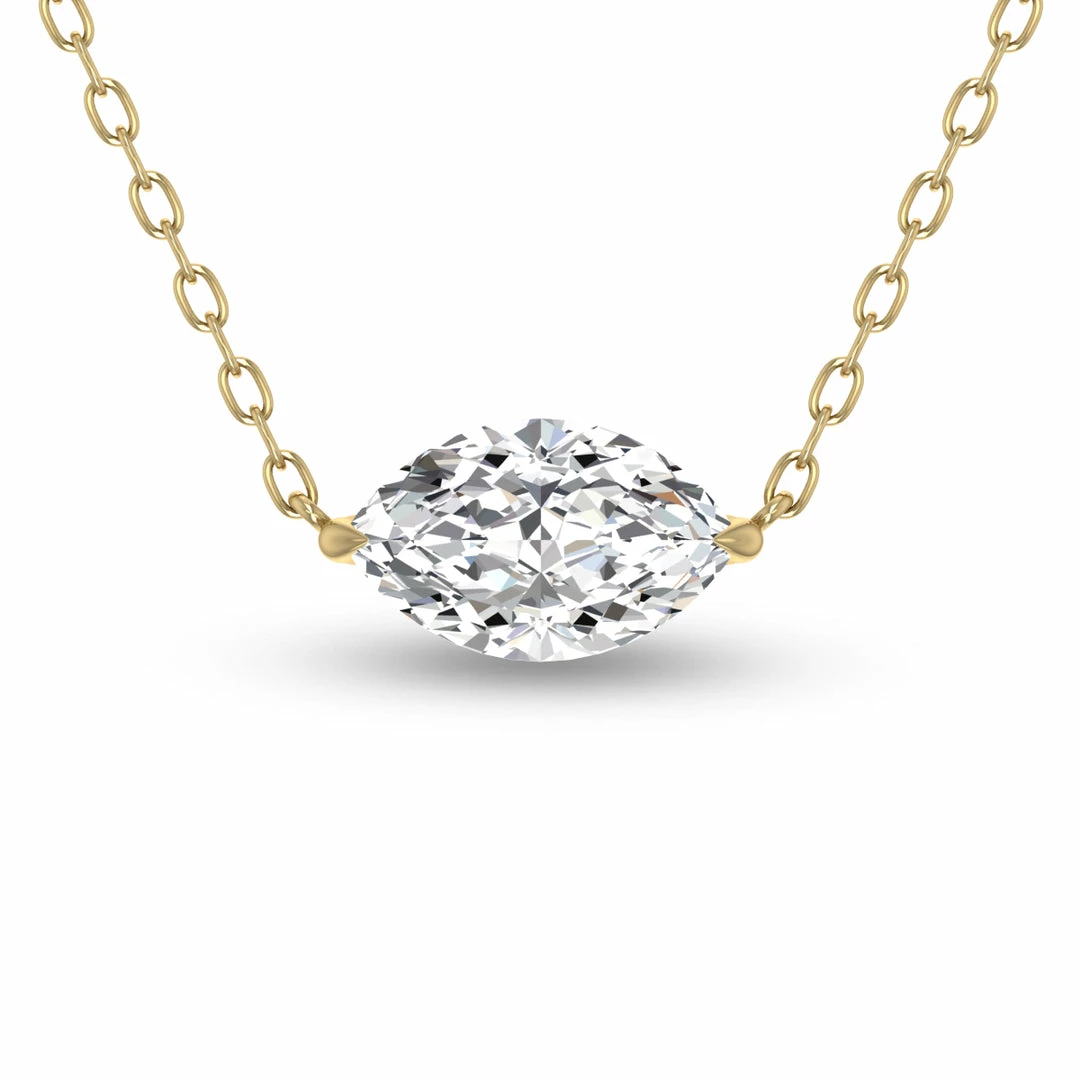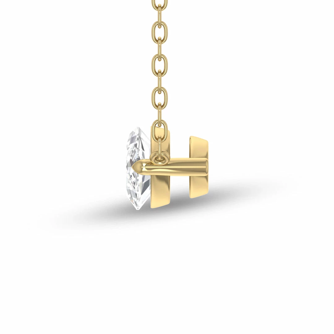 This timeless lab-grown diamond necklace is a classic accessory that will elevate any outfit. Expertly designed in smooth 14K yellow gold, this piece features a radiant 1/4 CTW marquise-shaped diamond gracefully floating on and a durable link chain that is secured by a spring ring clasp. Whether worn alone or layered with other pieces, this environmentally conscious and sustainably made accessory is sure to radiant marvelously while turning heads. If you are looking for a masterfully crafted diamond necklace that has identical brilliance to a natural diamond while being budget friendly this is the piece for you!