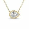 This timeless lab-grown diamond necklace is an innovative yet eye-catching accessory that will turn heads on any occasion. Expertly designed in 14K white gold, this piece features a horizontal 1/4 CTW pear-shaped diamond gracefully resting on and a secure 18-inch link chain. There is no comparison when it comes to this necklaceΓs unconditional sparkle, durable bezel setting, and masterful clean-cut lines. Whether worn alone or layered with other pieces, this environmentally conscious, sustainably made, and budget-friendly solitaire diamond necklace is sure to shine marvelously while elevating any outfit it is paired with.