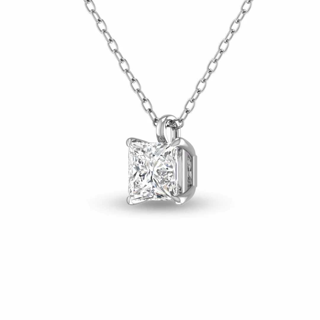 This timeless lab-grown diamond necklace is an eye-catching accessory that will turn heads on any occasion. Expertly designed in 14K white gold, this necklace features a radiant 1/4 CTW princess-cut diamond gracefully resting on and a secure 18-inch link chain. There is no comparison when it comes to this piece’s unconditional sparkle, durable prong setting, and iridescent clean-cut lines. Whether worn alone or layered with other accessories, this environmentally conscious, sustainably made, and budget-friendly solitaire diamond necklace is sure to glimmer effortlessly while elevating any outfit it is paired with.
