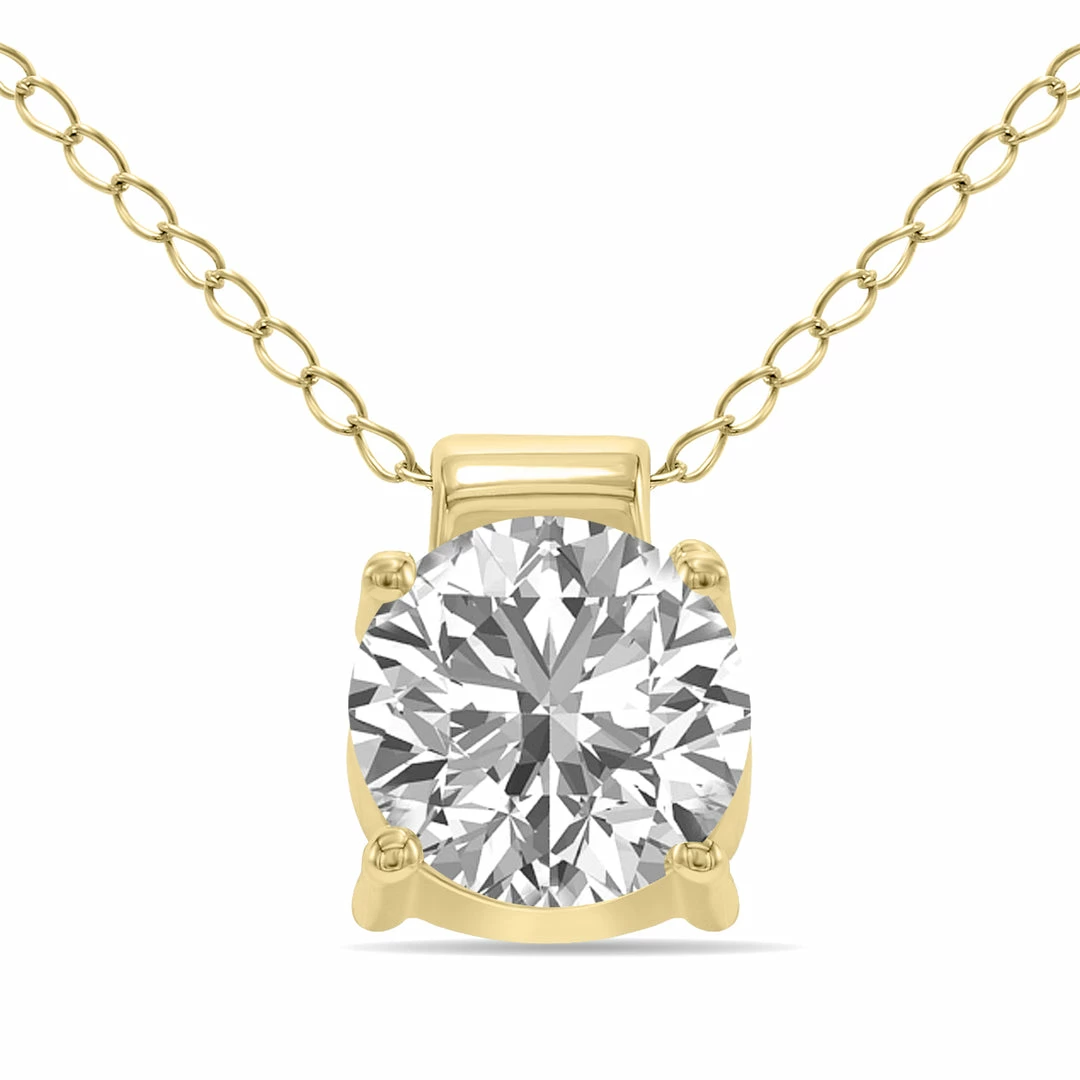 Best Sale π Monary Lab Grown 1 Carat 4 Prong Diamond Solitaire Pendant in 14K Yellow Gold (F-G Color, VVS Clarity) for π© women π
