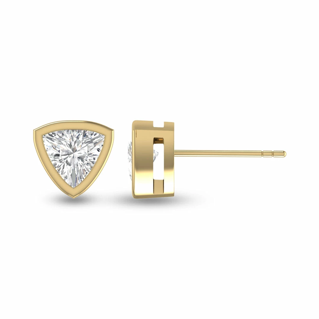 Wholesale π Monary Lab Grown 1 CTW Trillion Shaped Bezel Set Solitaire Diamond Earrings in 14K Yellow Gold for π© women β