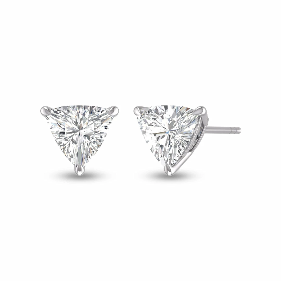 These sophisticated lab-grown diamond earrings are a timeless accessory everyone needs in their jewelry collection. Luxuriously set in 14K white gold, this radiant piece features trillion-shaped solitaire diamonds weighing 1 CTW and a durable push-back backing. The unconditional glimmer, secure setting, and clean-cut lines of this piece are sure to elevate any outfit by adding a subtle touch of elegance. If you are looking for earrings that have identical brilliance to a natural diamond while being environmentally conscious, sustainably made, and budget-friendly, this is the accessory for you!