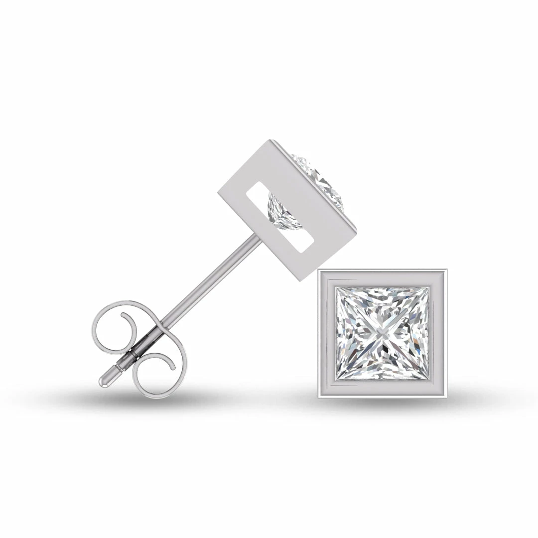 Hot Sale π Monary Lab Grown 3/4 CTW Princess Cut Bezel Set Solitaire Diamond Earrings in 14K White Gold for π© women π€©