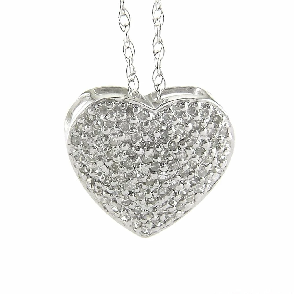 White Gold Heart Single Pave Diamond Pendant (14kwg Heart Pendant) (Large Pave Heart (Wg/With Chain)) D – 0.25 (11.54mm H 12.85mm W),Heart