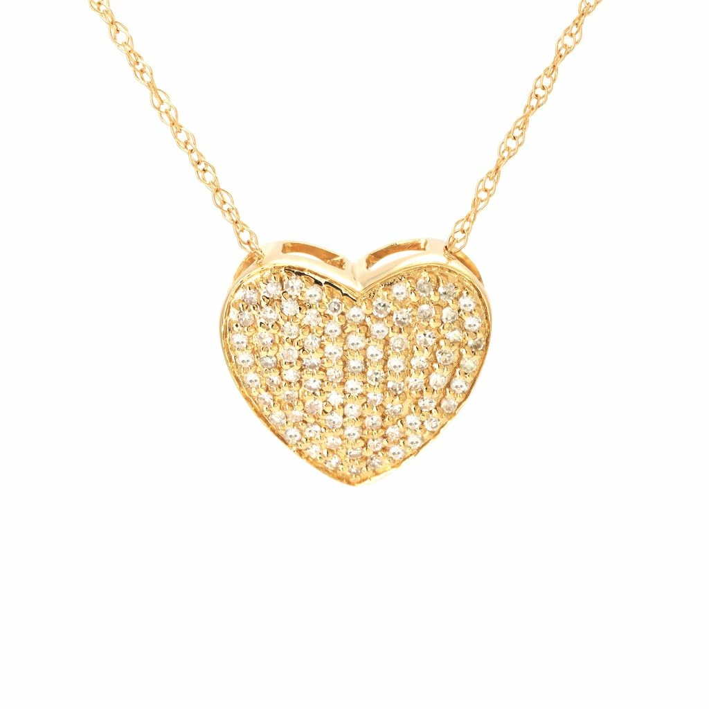 Yellow Gold Heart Single Pave Diamond Pendant (14kyg Heart Pendant) (Large Pave Heart (Yg/With Chain)) D – 0.25,Heart