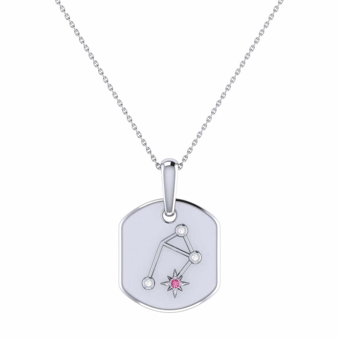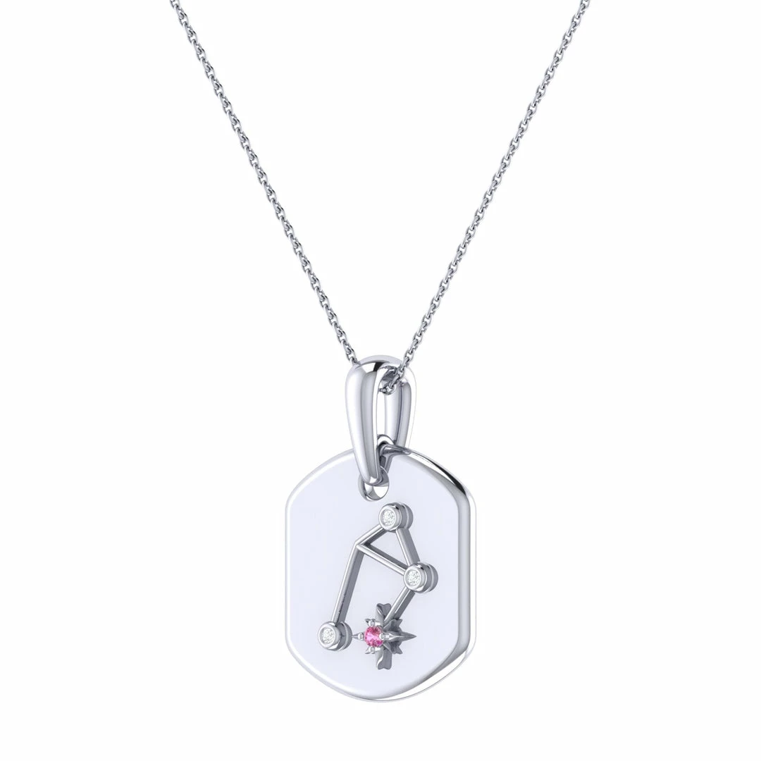Discount π Monary Libra Scales Pink Tourmaline & Diamond Constellation Tag Pendant Necklace in Sterling Silver for π© women π
