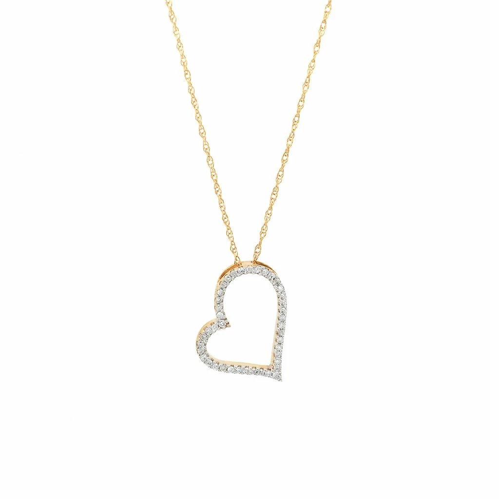 Yellow Gold Heart Single Prong Diamond Pendant (14kyg Heart Pendant) (Medium Twisted Heart (Yg/With Chain)) D – 0.18,Yg,Heart