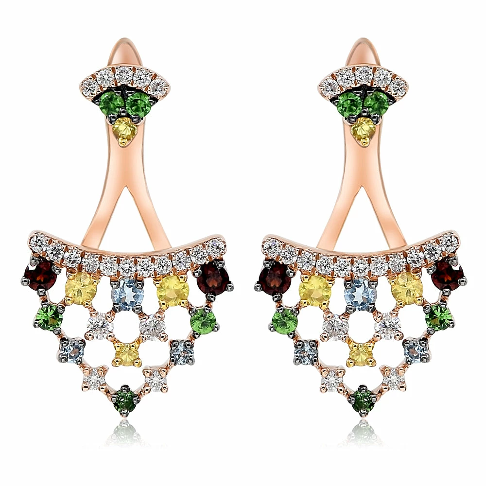 Top 10 π Monary Mixed Colors Gemstone & Diamond Earrings Set in 14K Rose Gold for π© women β
