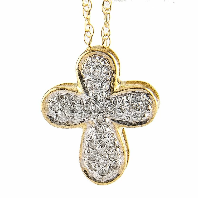 Yellow Gold Cross Single Pave Diamond Pendant (14kyg Cross Pendant) (Pave Cross Necklace (Yg)) D – 0.10,Yg,Cross,Religious