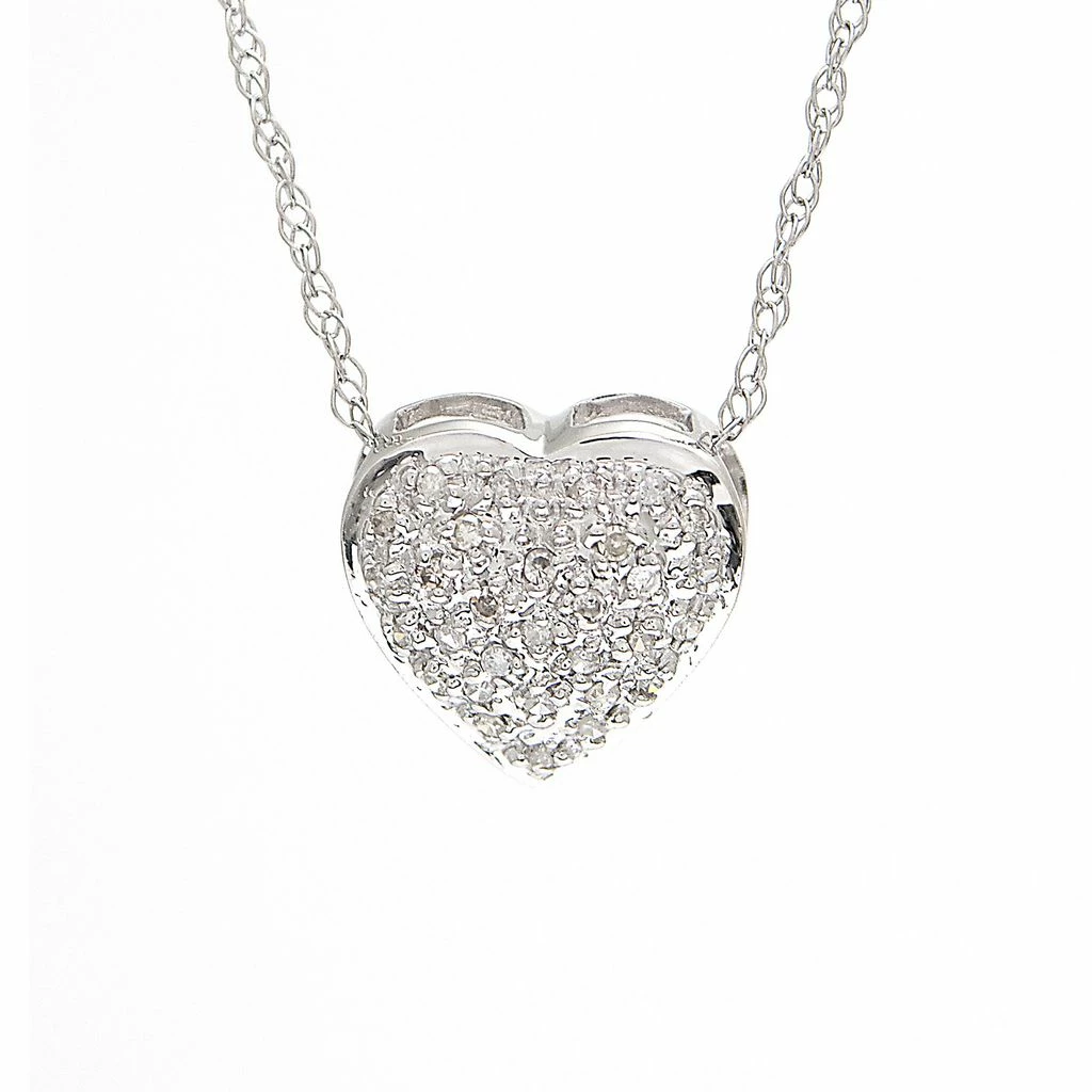 White Gold Heart Single Pave Diamond Pendant (14kwg Heart Pendant) (Pave Heart Necklace (Wg)) D – 0.10 (10.01mm H),Wg,Heart