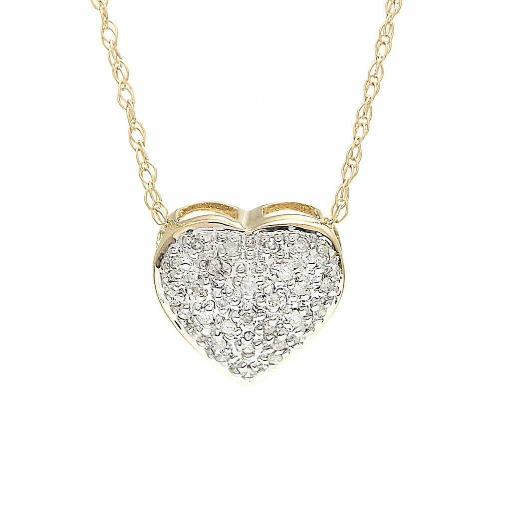 Yellow Gold Heart Single Pave Diamond Pendant (14kyg Heart Pendant) (Pave Heart Necklace (Yg)) D – 0.10,Yg,Heart
