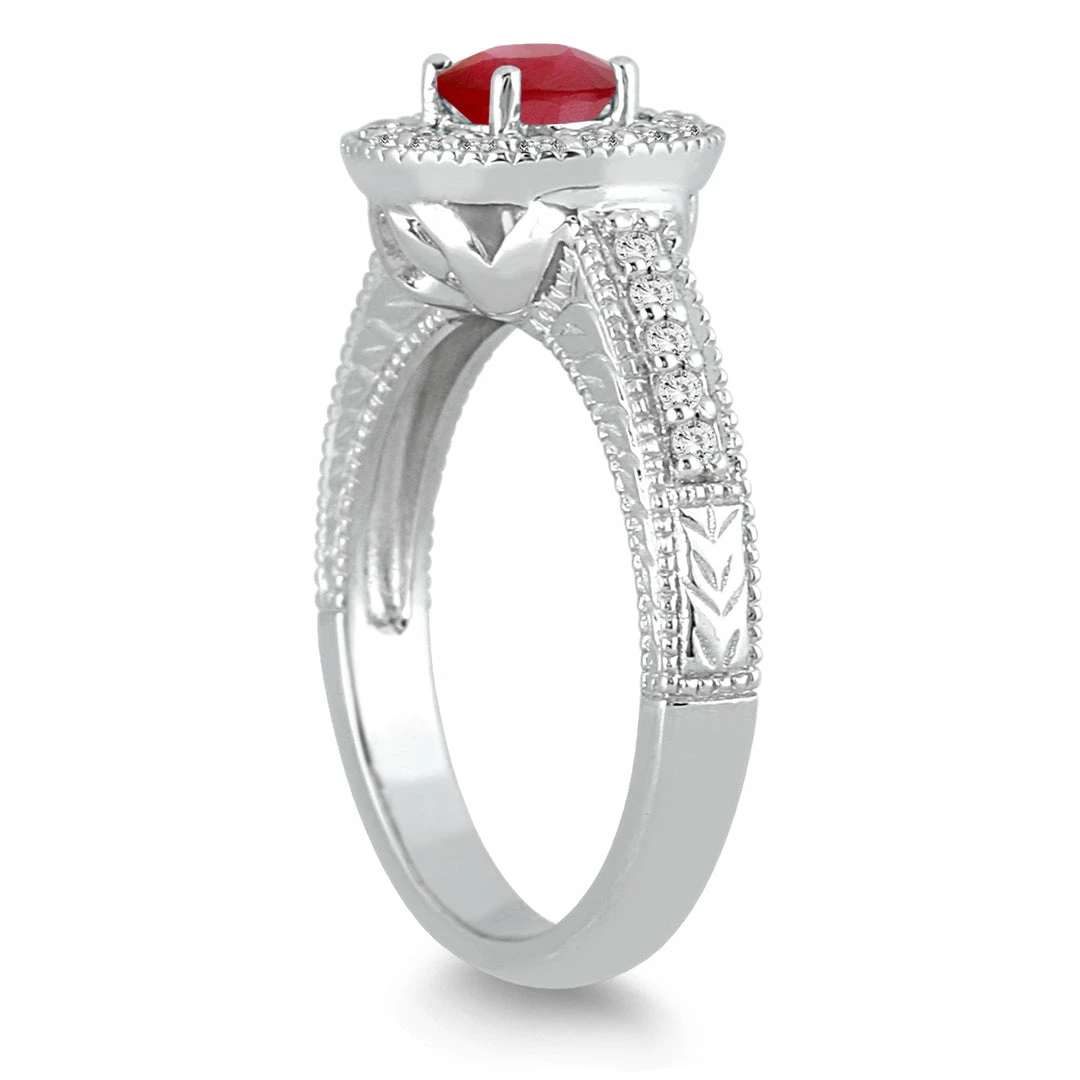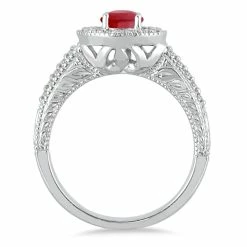Top 10 π₯ Monary Ruby and Diamond Halo Ring in 10K White Gold for π© women π