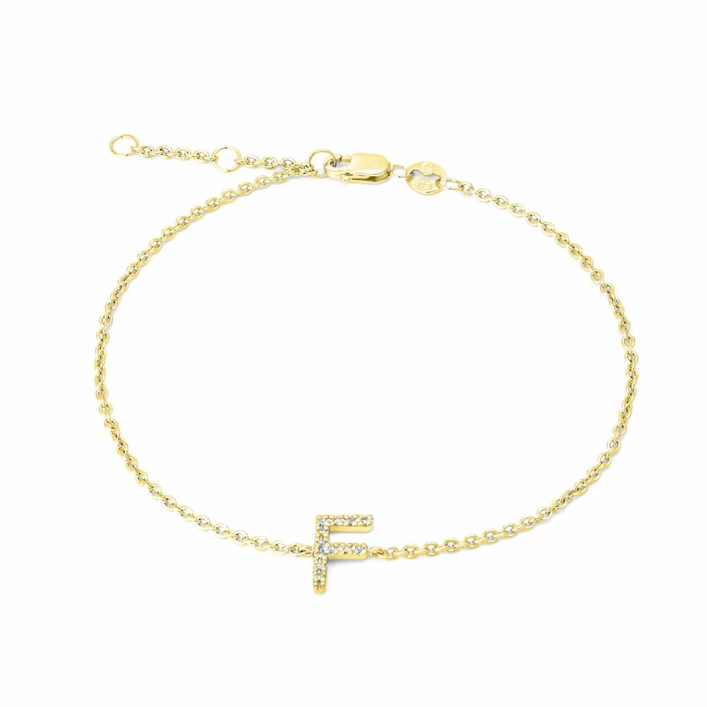 Sterling Silver Letters Single Micro Pave Diamond Bracelet (Silvr Letters Bracelet) (Silver/18k Yellow Dia “f” Bracelet “7+.5+.5”) D – 0.05 (9 Mm X 6 Mm),Letters