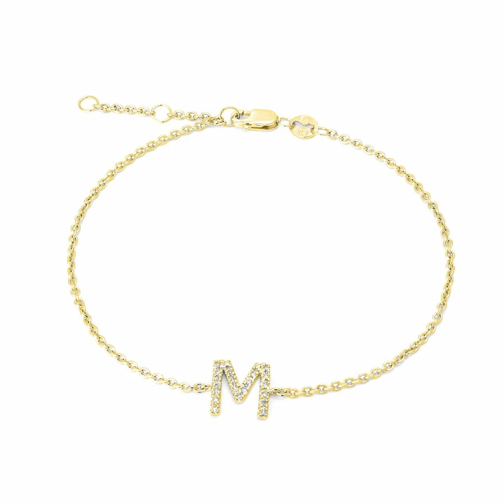 Sterling Silver Letters Single Micro Pave Diamond Bracelet (Silvr Letters Bracelet) (Silver/18k Yellow Dia “m” Bracelet “7+.5+.5”) D – 0.06 (9 Mm X 6 Mm),Letters