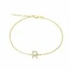 Sterling Silver Letters Single Micro Pave Diamond Bracelet (Silvr Letters Bracelet) (Silver/18k Yellow Dia “q” Bracelet “7+.5+.5”) D – 0.05 (9 Mm X 6 Mm),Letters